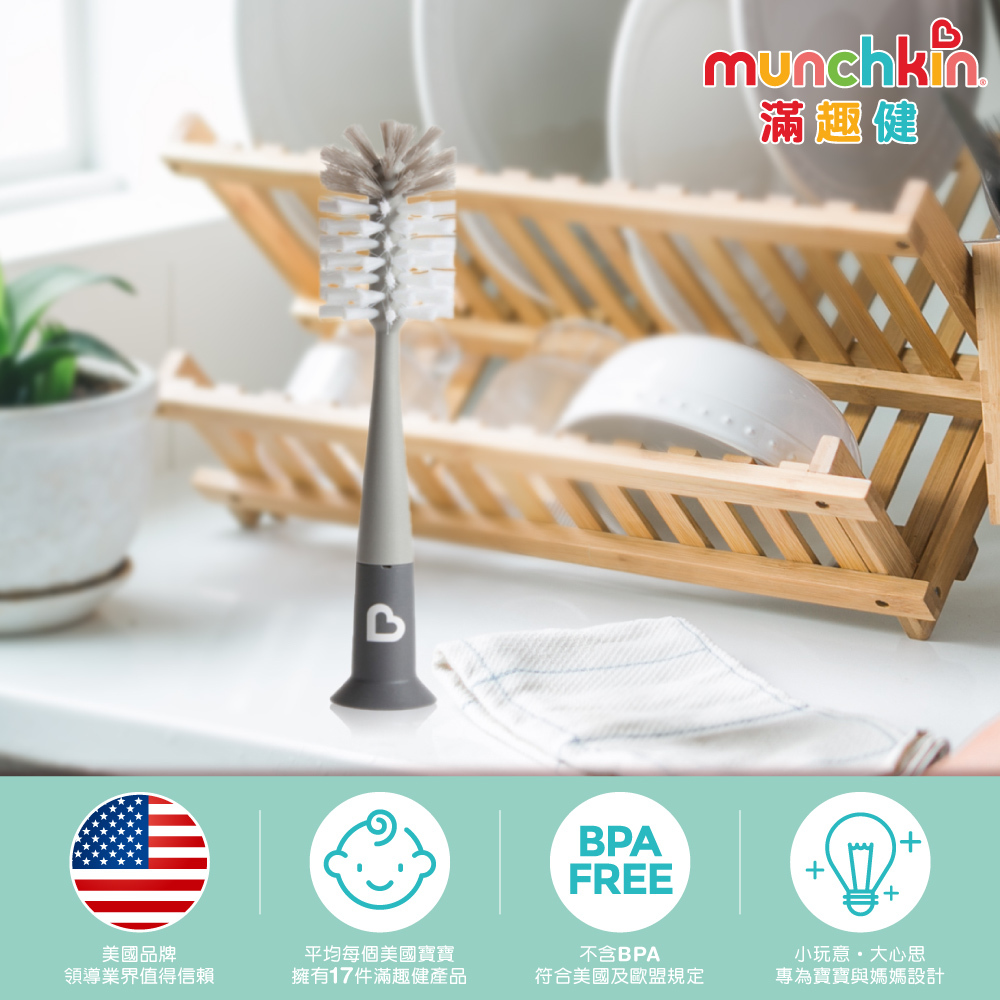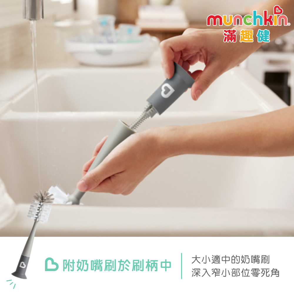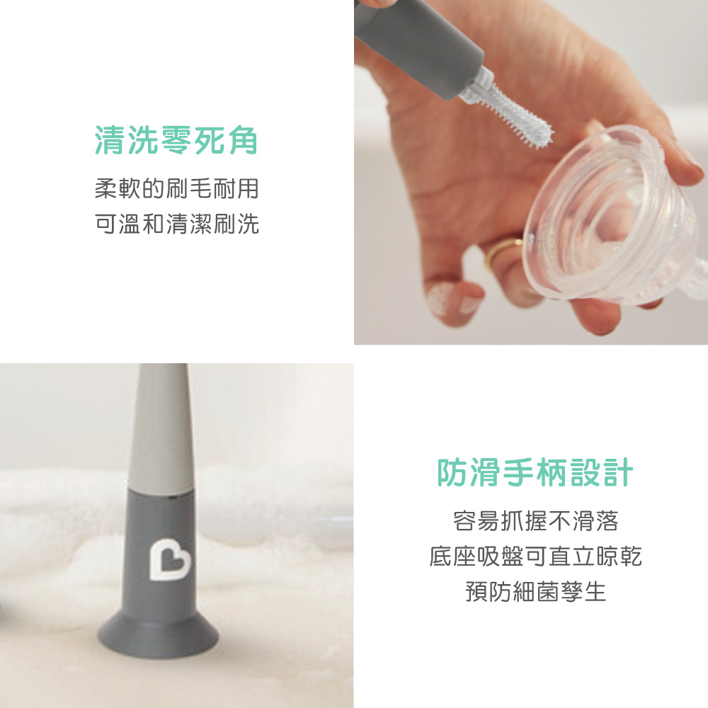 ●軟橡膠奶嘴刷可輕柔地清潔。