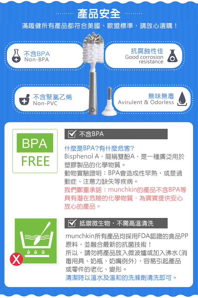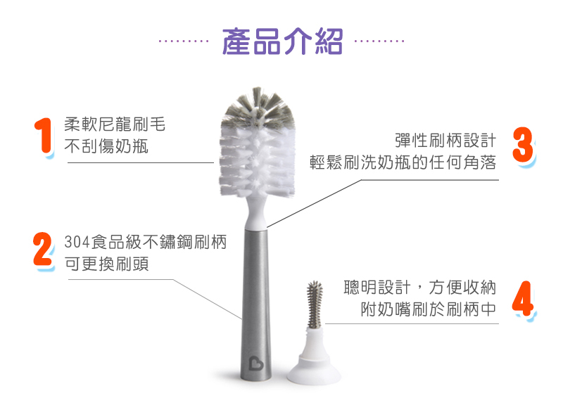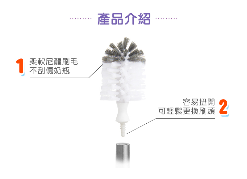 ●柔軟的刷毛耐用、不會刮傷奶瓶。