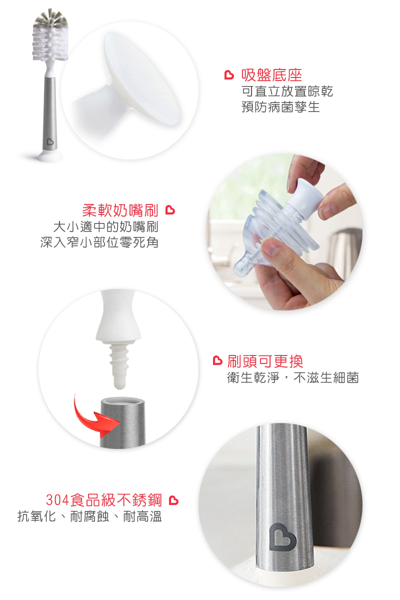 ●柔軟奶嘴刷,可溫和刷洗奶嘴。