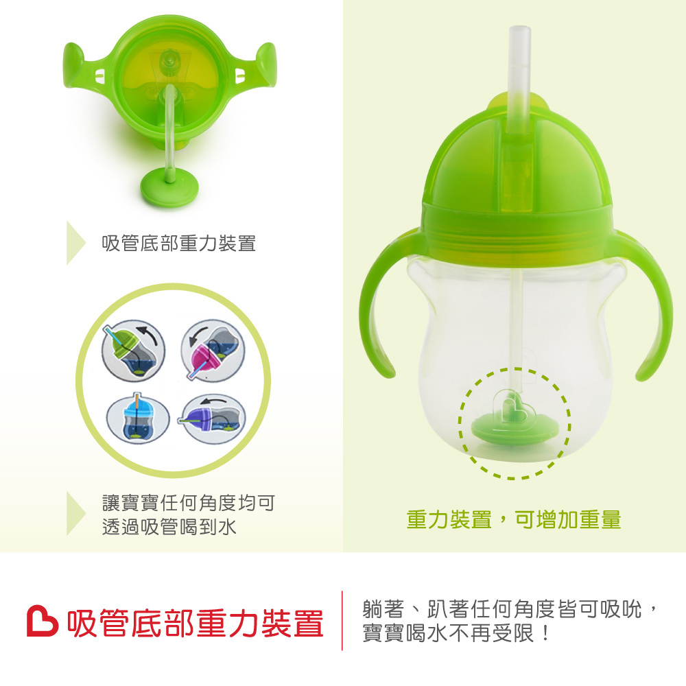 ●吸管底部增加重量,讓寶寶360度任何角度皆可吸吮。