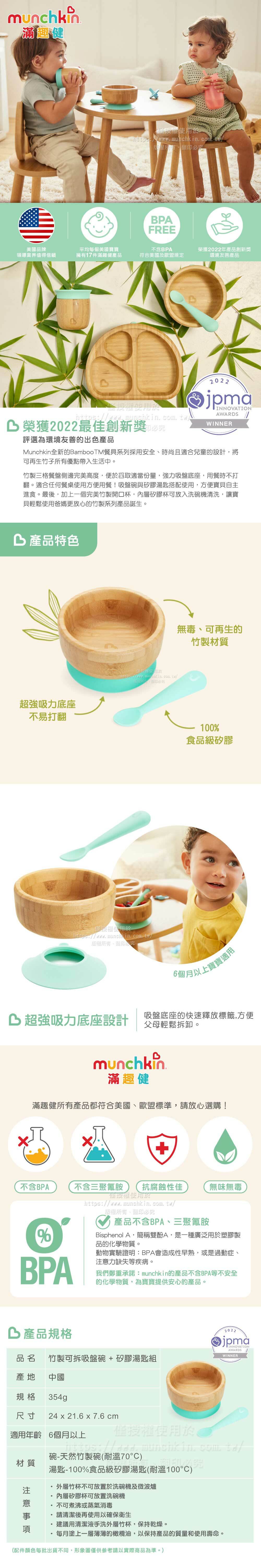 ●竹製碗、100%食品級矽膠湯匙,搭配超強吸力底座,寶貝不輕易打翻