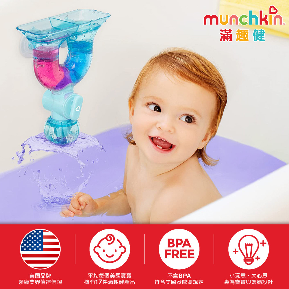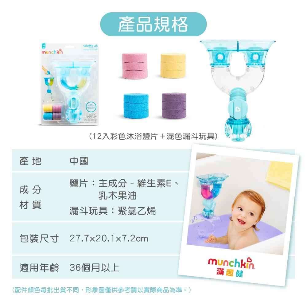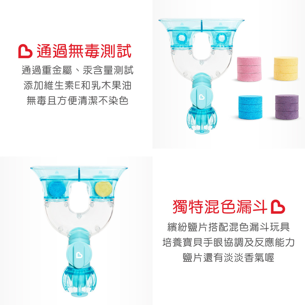 ●繽紛鹽片搭配混色漏斗玩具,爸媽安心也增添寶貝洗澡時樂趣