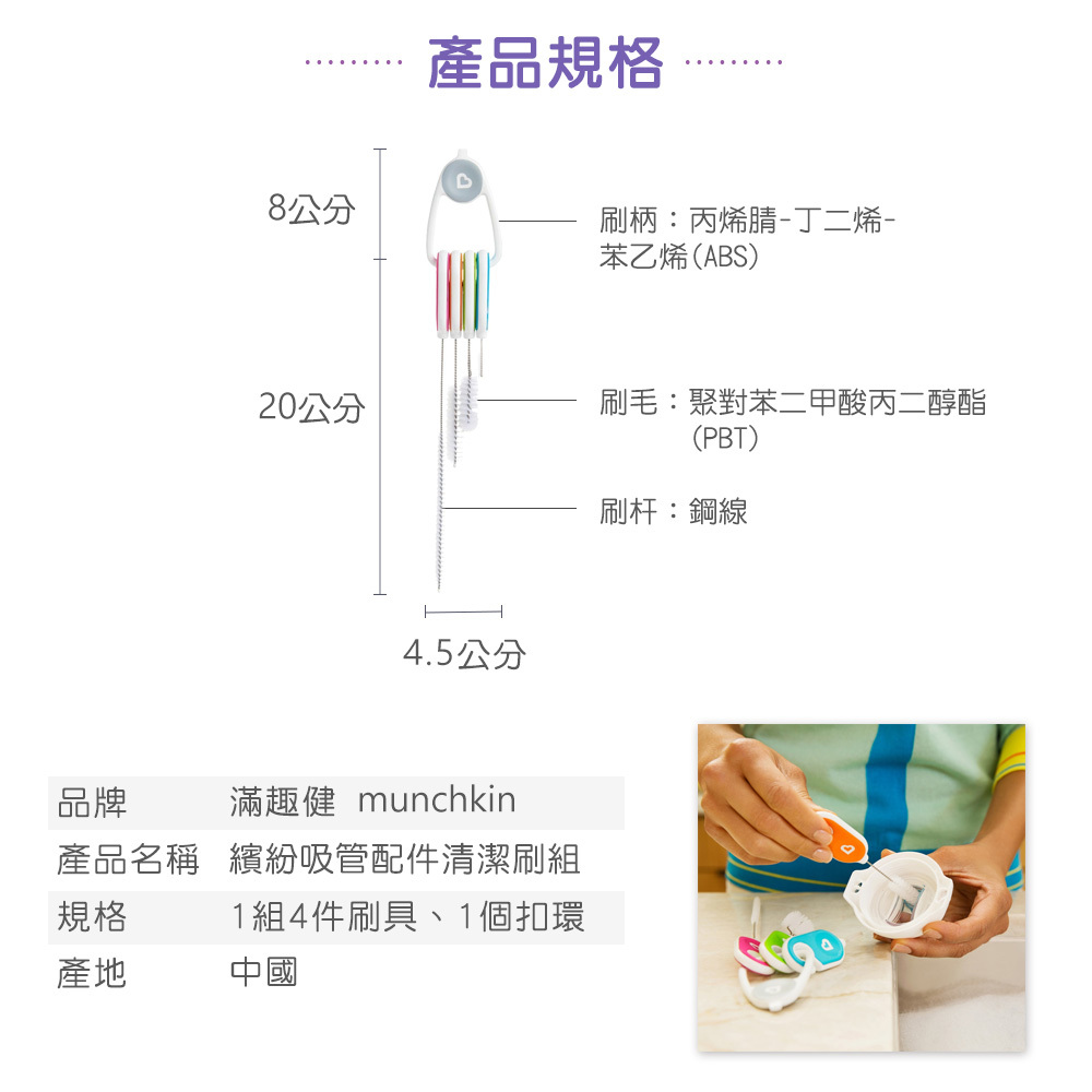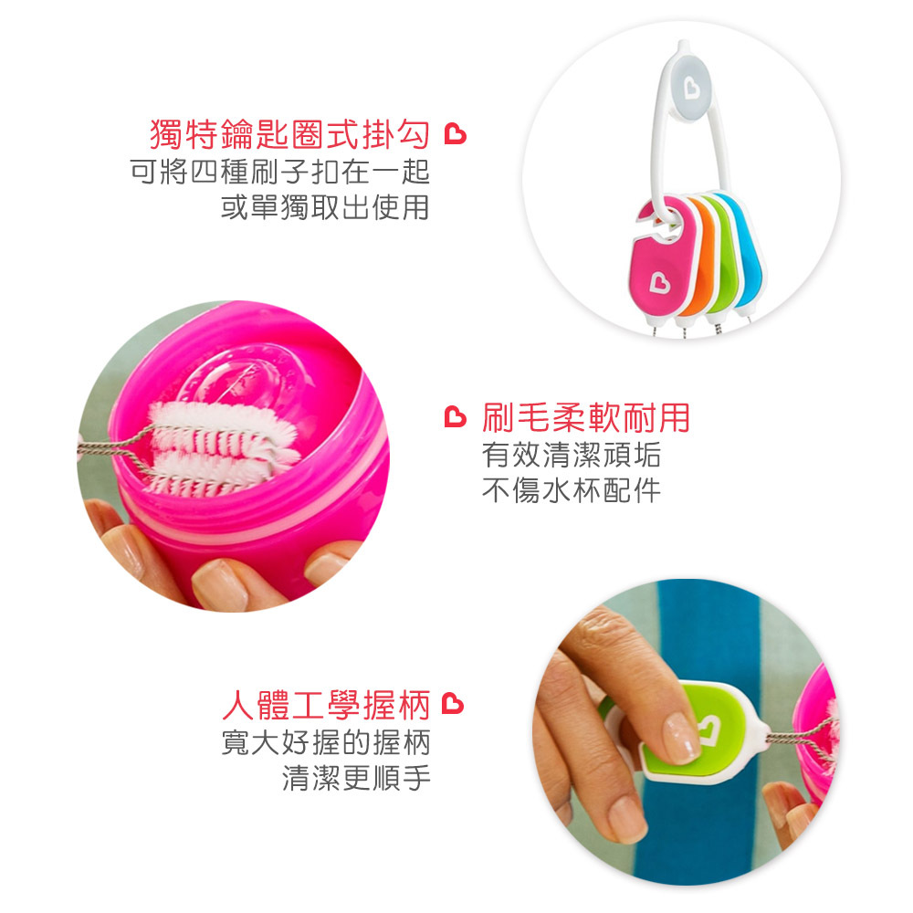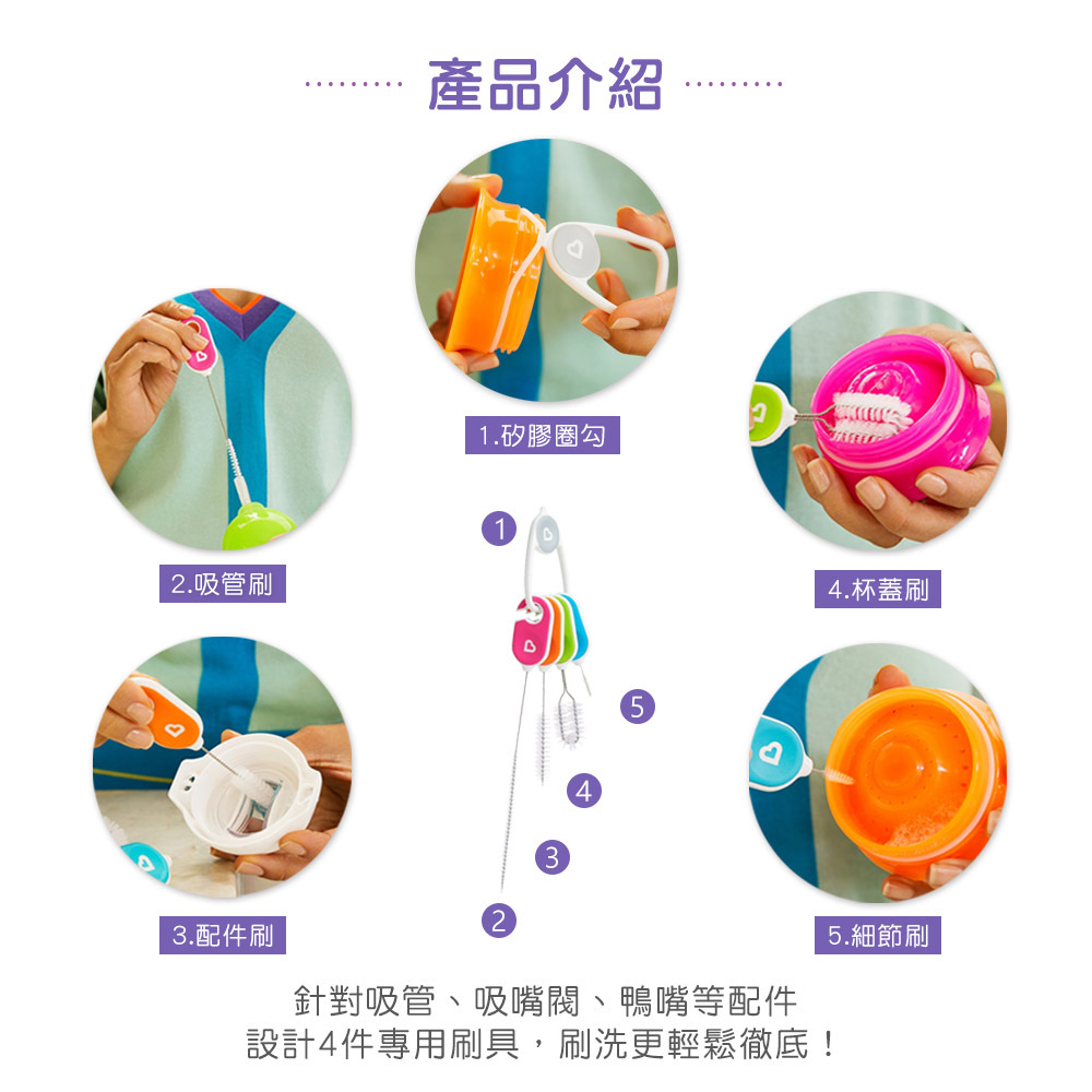 ●針對不同配件所設計的刷子(吸管、閥、鴨嘴),更輕鬆刷洗。