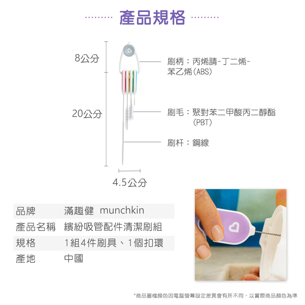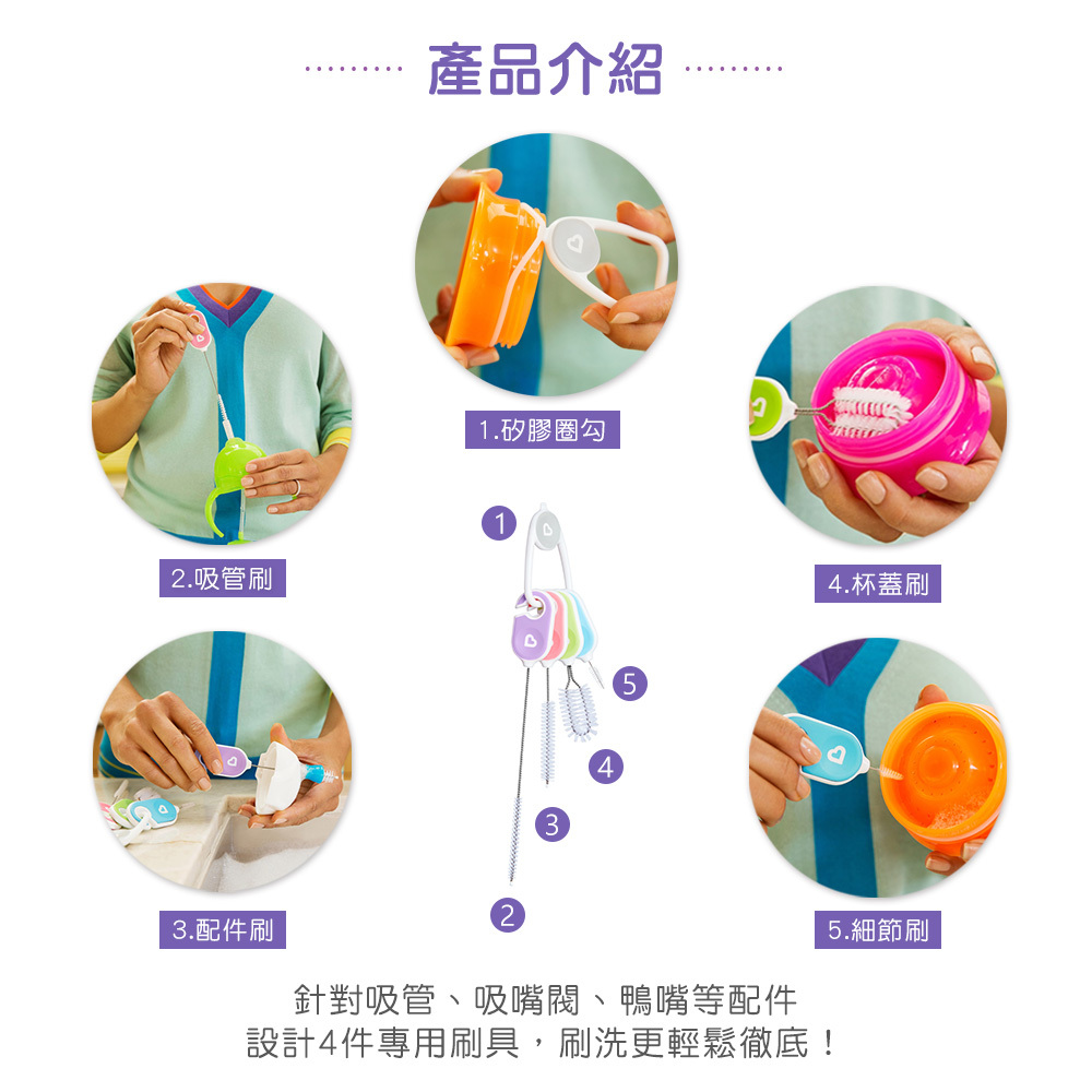 ●針對不同配件所設計的刷子(吸管、閥、鴨嘴),更輕鬆刷洗。