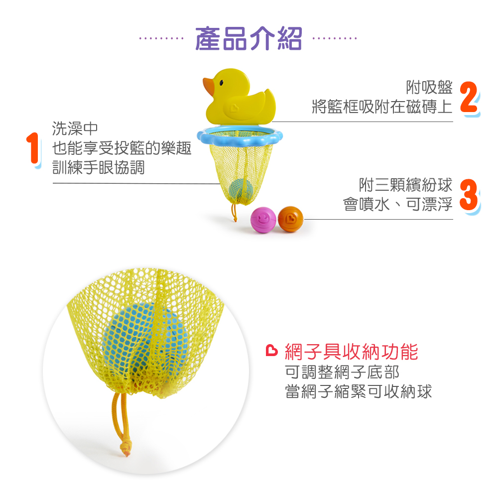 組合內容:鴨子洗澡玩具*1、小鴨籃球組洗澡玩具*1、小鴨造型洗頭不哭軟式水瓢*1