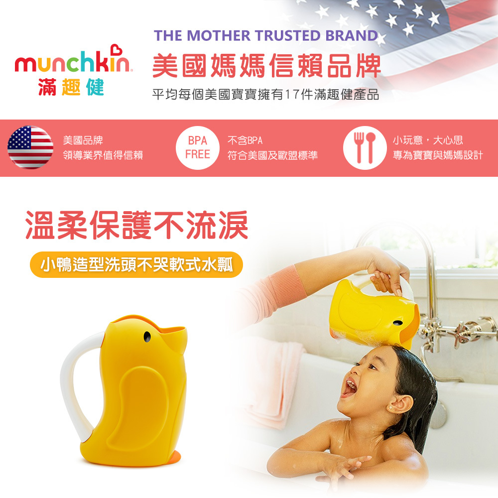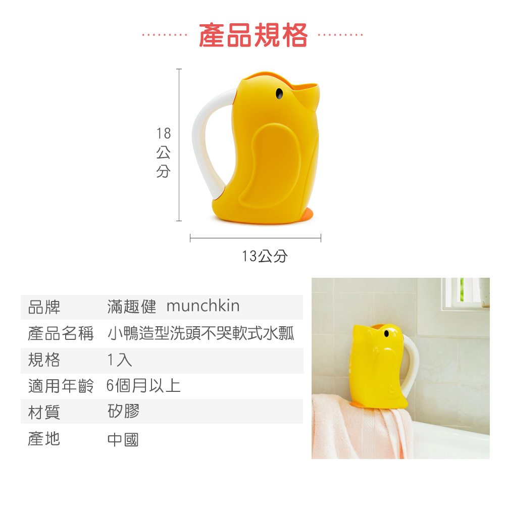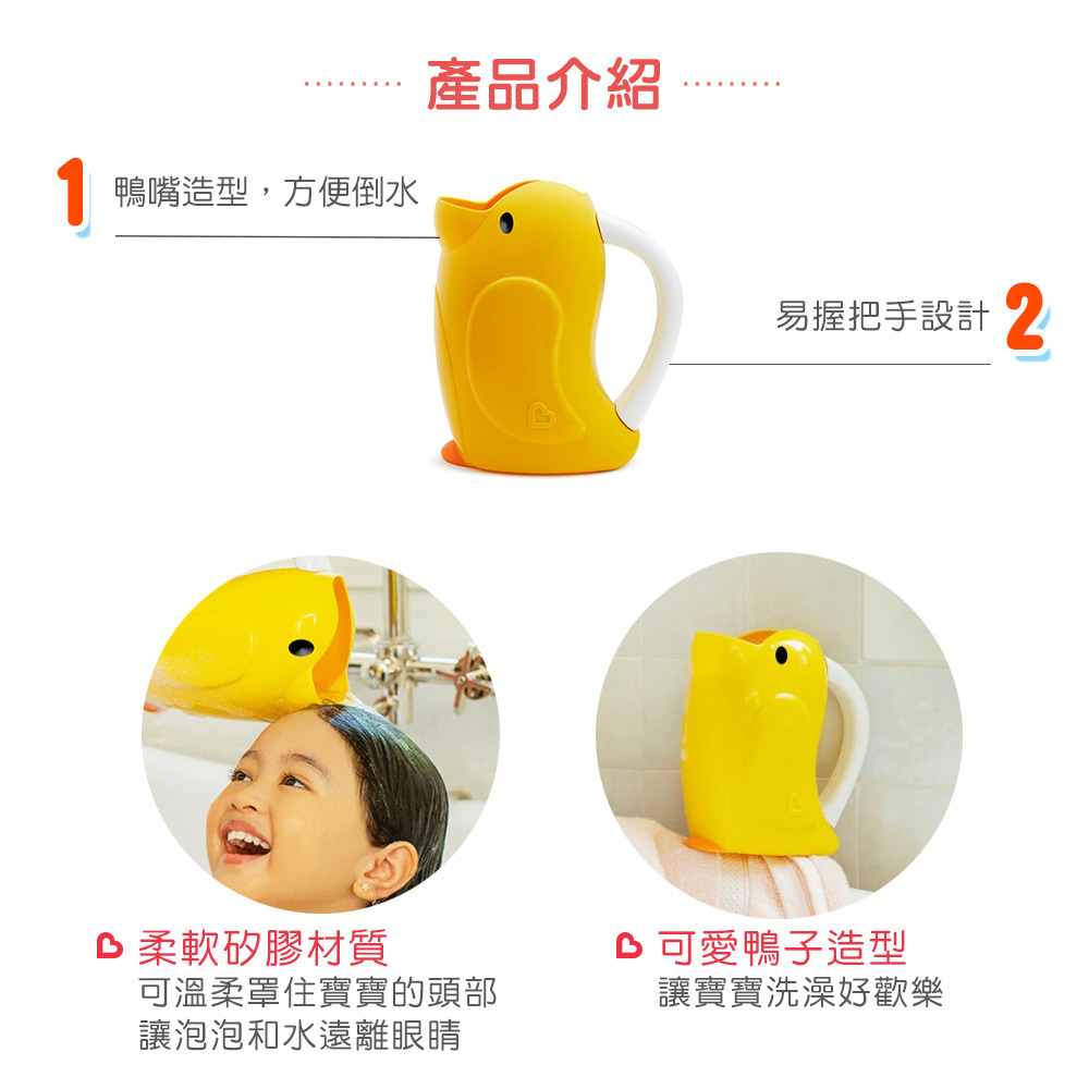 ●易握把手設計,讓寶寶洗頭洗澡好沖洗。