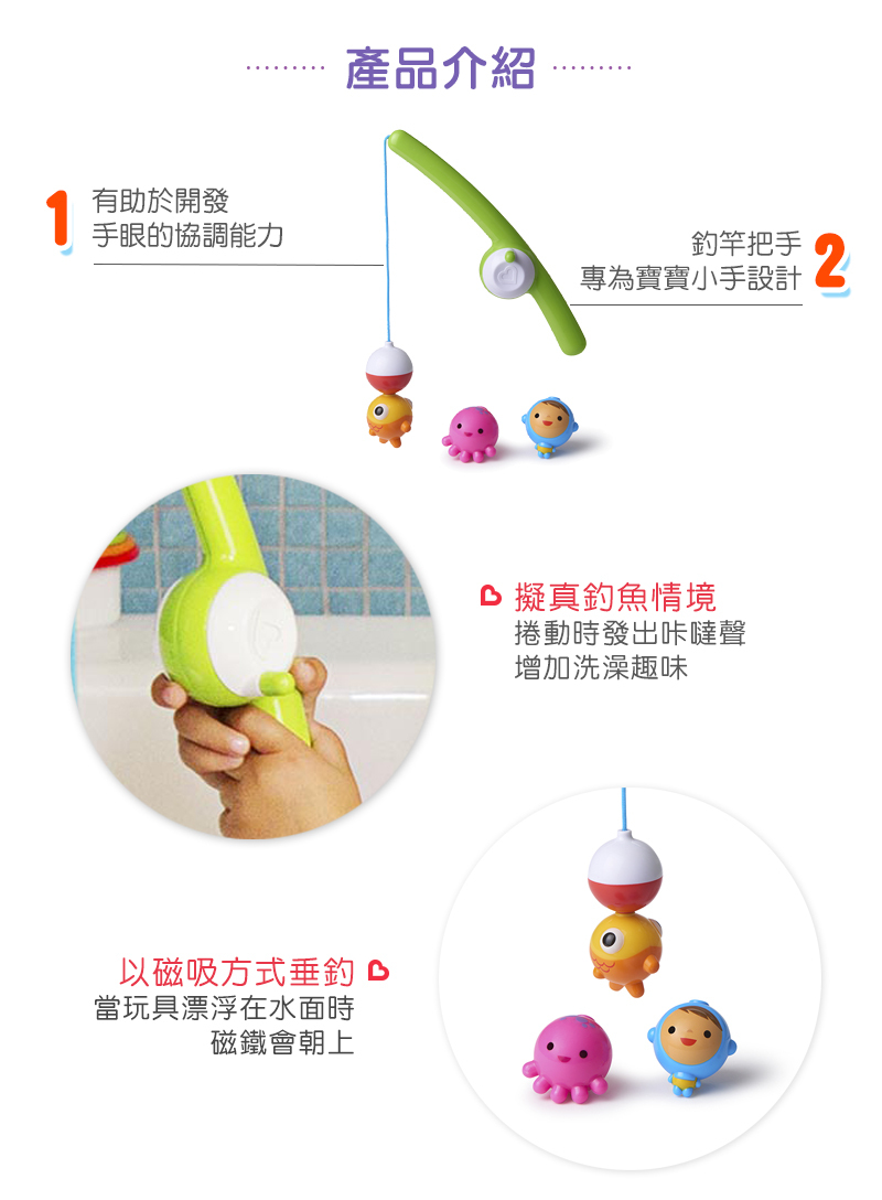 ●釣魚洗澡玩具有助於開發手眼的協調能力。