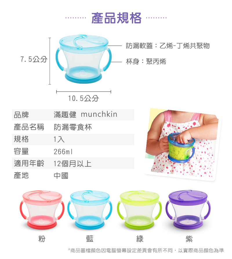 ●上蓋採防漏軟蓋設計,方便寶寶拿取點心,不易刮傷小手。