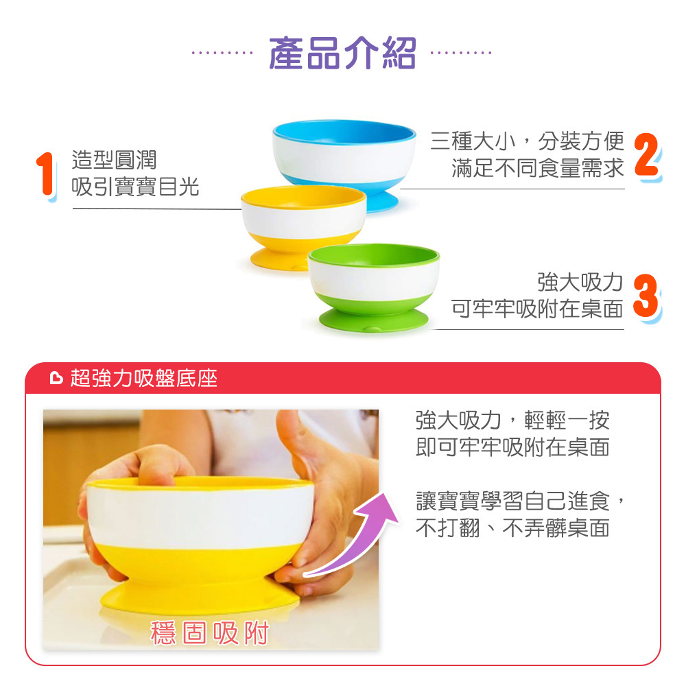 ●強大吸力,輕輕一按即可牢牢吸附在桌面,不易滑動,讓寶寶學習自己進食。