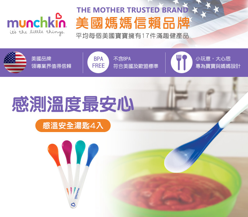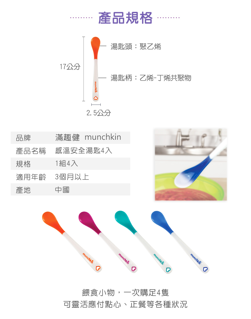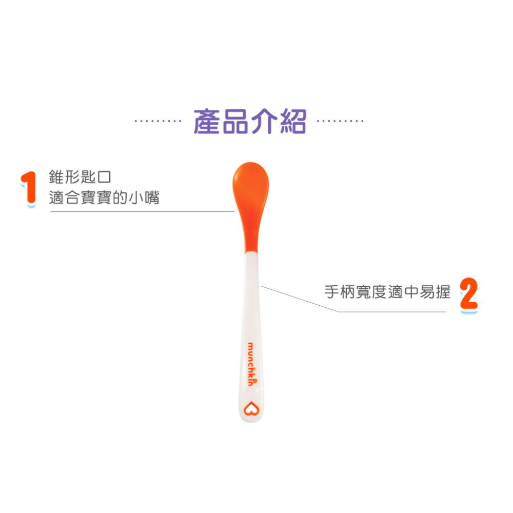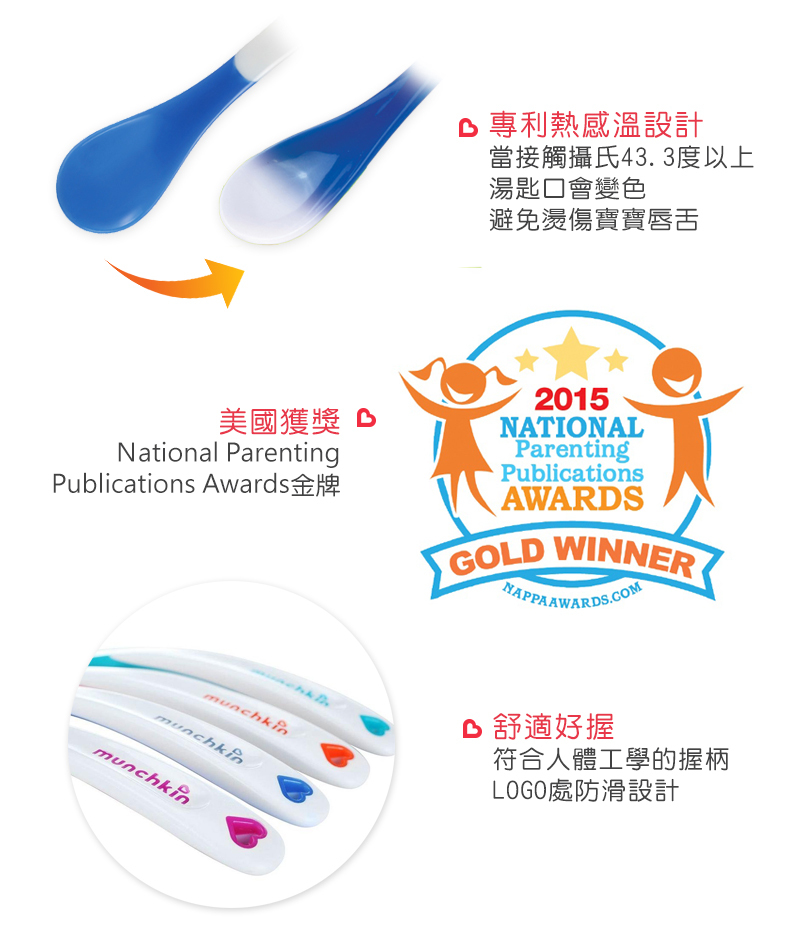 ●當湯匙接觸寶寶食物過熱時(約攝氏43.3度以上),湯匙口會變色。