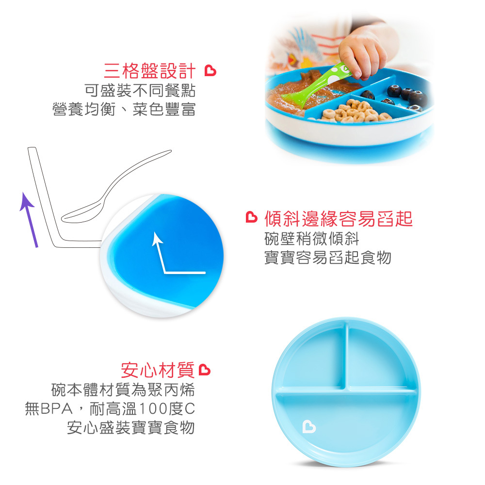 ●強大吸力,不易滑動,讓寶寶學習自己進食