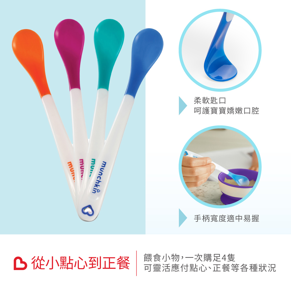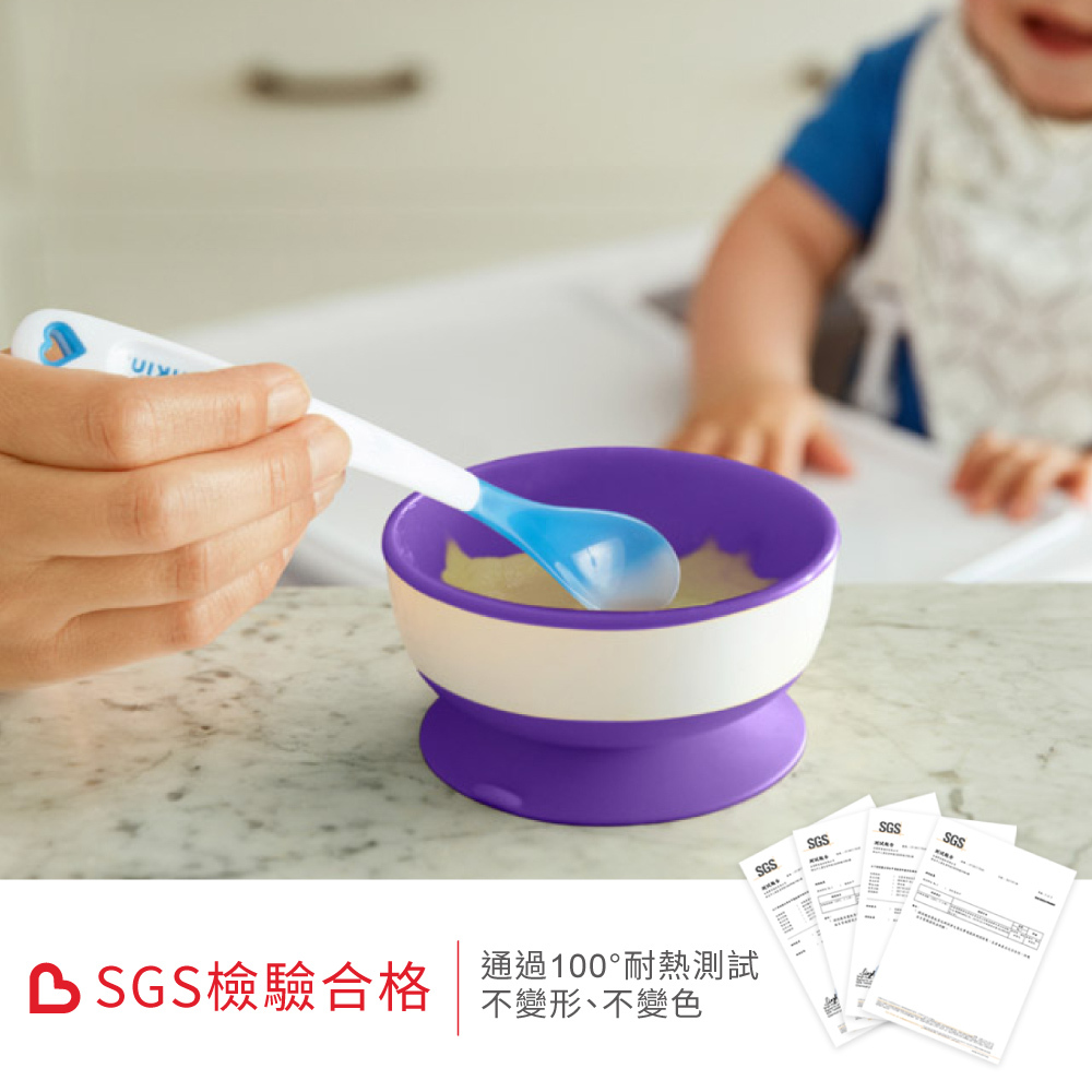 ●當湯匙接觸寶寶食物過熱時(約攝氏43.3度以上),湯匙口會變色。